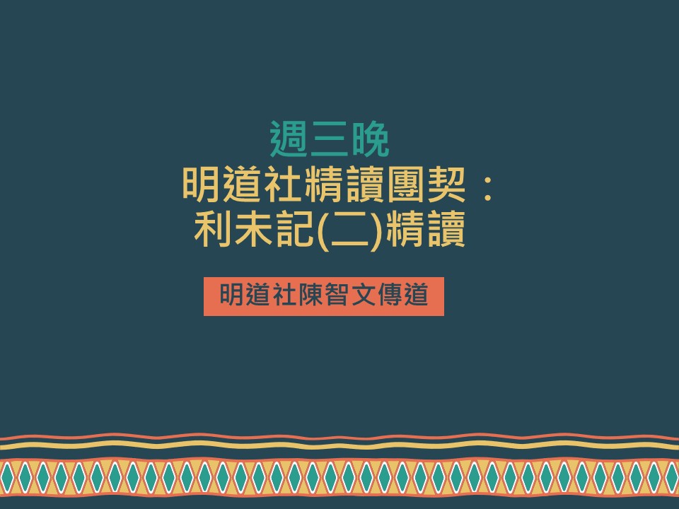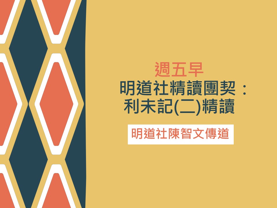 明道社精讀團契(週三晚): 利未記(二)精讀
